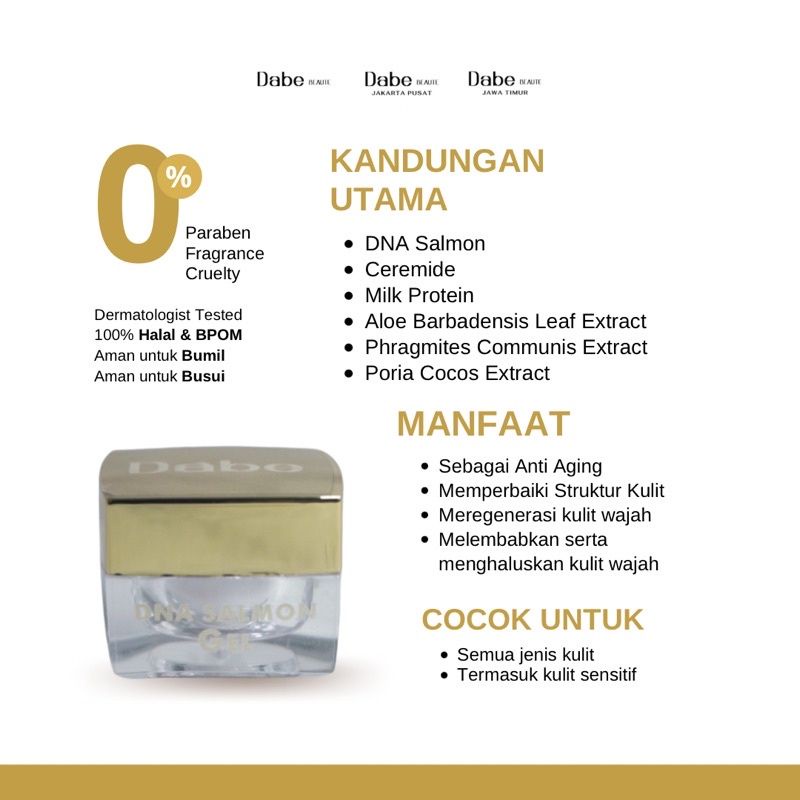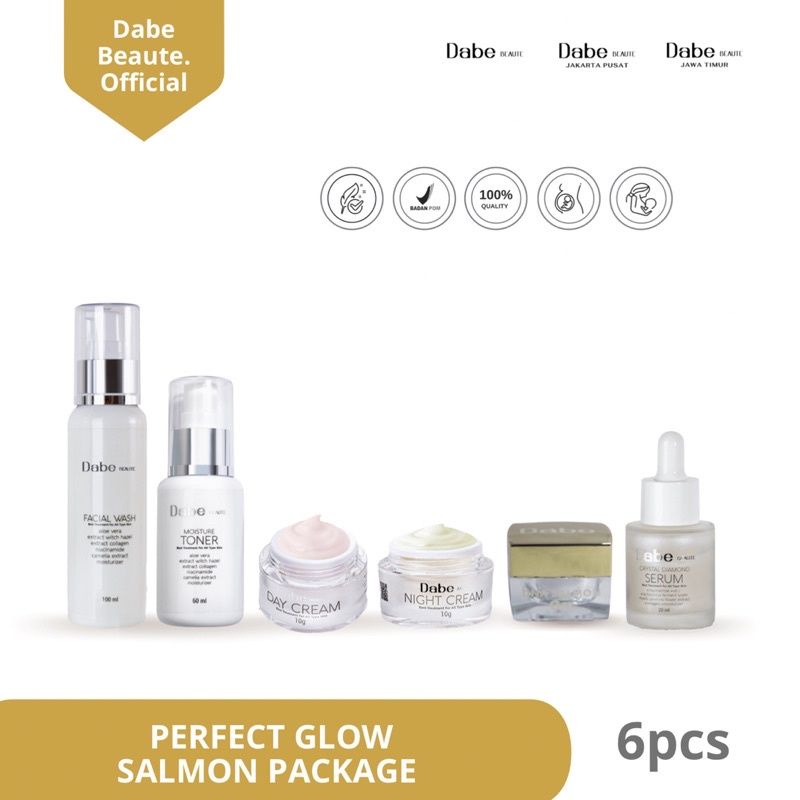 Dabe Beaute Perfect Glow Salmon adalah sebuah Rangkaian skincare lengkap terdiri dari Facial Wash, Moisture Toner, Crystal Diamond Serum, DNA Salmon Jell dan Cream siang serta malam dengan manfaat utama untuk mengatasi masalah Kulit kusam, flek hitam dan tone kulit yang tidak merata serta skin barrier yang rusak.