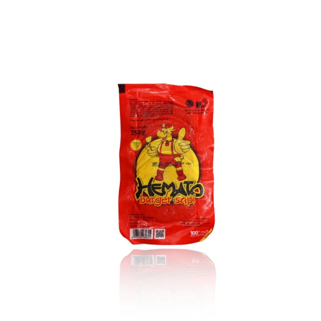 Hemato Daging Burger Sapi Bun Besar merupakan olahan daging dengan rasa daging sapi yang nikmat dengan tekstur lembut burger.