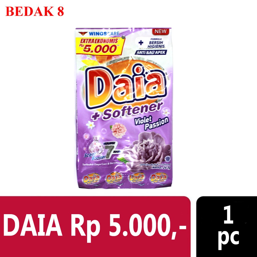Daia Softener merupakan deterjen dengan butiran pelembut (Softener). Memiliki 6 keunggulan yang mampu membersihkan pakaian secara all out, dan menjaga warna tetap stand out. Daia Deterjen, Deterjen Bubuk No 1 di Indonesia (2019, Nielsen)