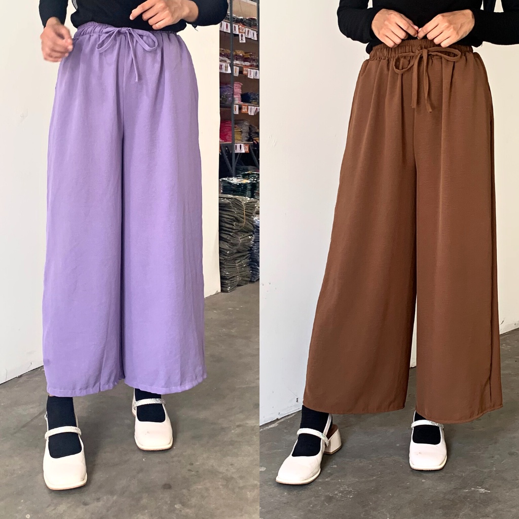 SPESIFIKASI/DETAIL - Bahan Crinkle Airflow (Halus, Lembut, jatuh dan tidak mudah kusut) - Pinggang Full karet dengan detail yang cantik dan bahan karet berkualitas yang kuat, elastis/melar - Variasi tali - Saku hidup di kanan dan Kiri