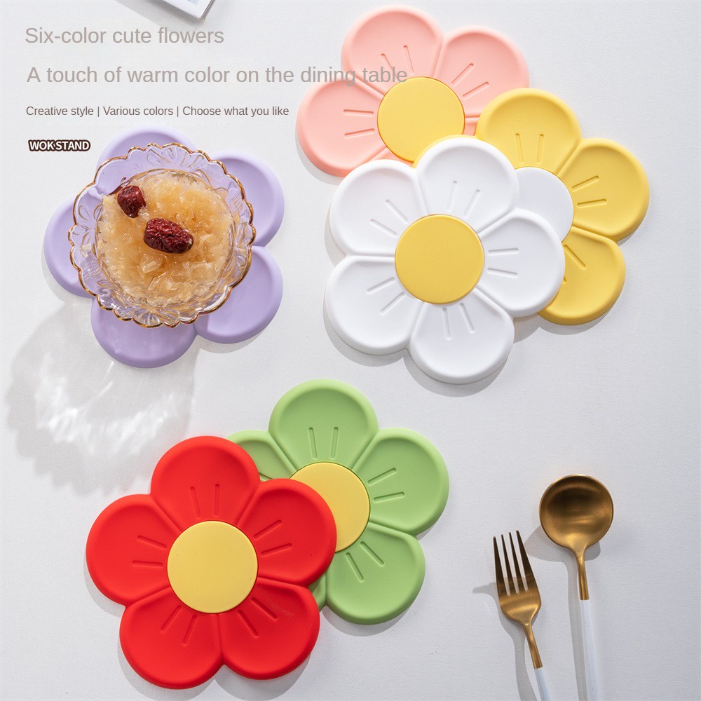 Perlengkapan Rumah > Peralatan Makan > Tatakan Piring & Gelas > ღ Daisy Bentuk Silikon Coaster Tahan Panas Anti Panas Alas Alas Isolasi Panas Tablewear Pad Meja Dapur Isolasi Panas Tikar Dekorasi
