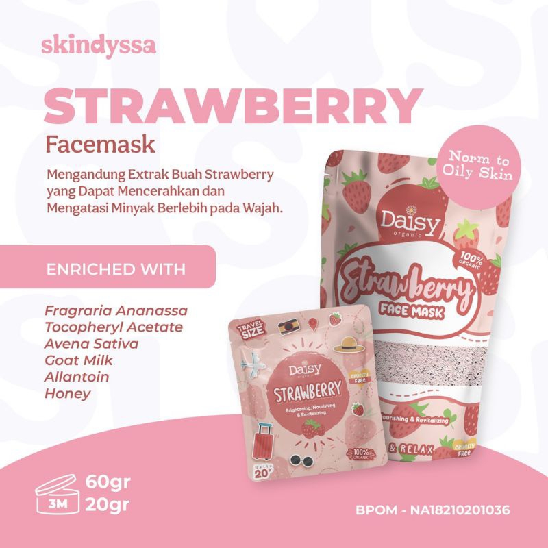 Daisy Organic Strawberry Facemask dibuat dari bahan-bahan alami yang baik digunakan untuk perawatan wajah harian. Mengandung Extrak Buah Strawberry yang dapat mencerahkan dan mengatasi minyak berlebih pada wajah. Gunakan secara teratur untuk hasil yang maksimal.