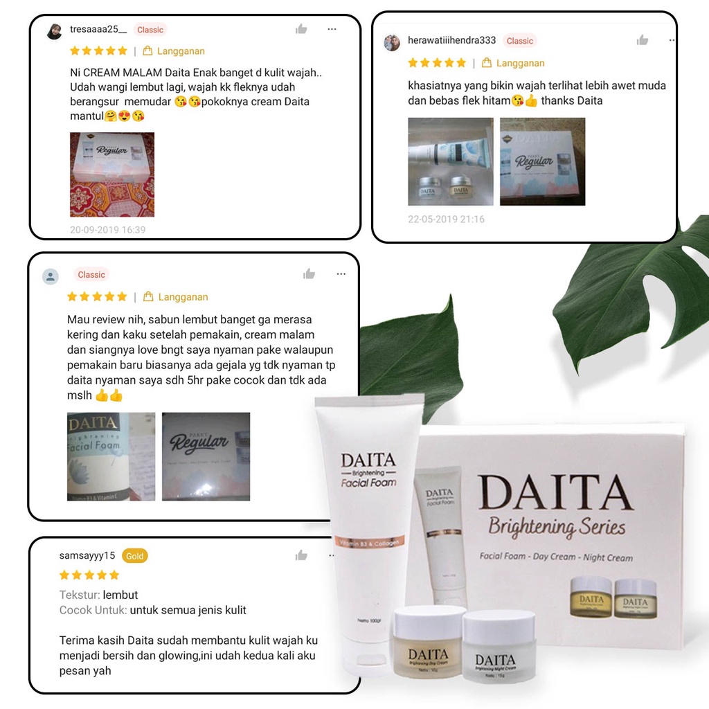 Daita skincare original cosmetic brightening paket facial foam day cream night cream glowing whitening bpom ampuh putih cepat dalam 7 hari