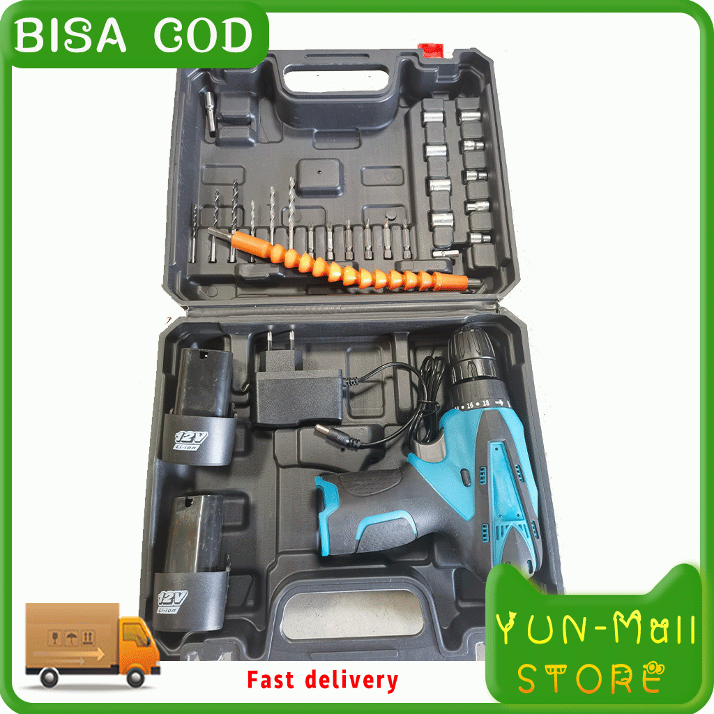 Video perkenalan produk (dalam stok, COD)YUN Mall Mesin Bor Baterai 10mm 12V Mesin Bor Listrik Dual Speed Cordless Drill Set Dua Kecepatan Bor Listrik Obeng Elektrik 1/2 Batteries Pengisi daya. Sumber: Shopee.