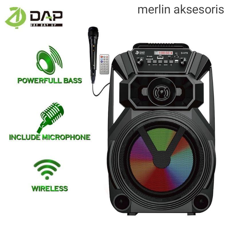Detail DAP SPEAKER BLUETOOTH D-VY8 KARAOKE FREE MIC 8 INCHI/SALON AKTIF