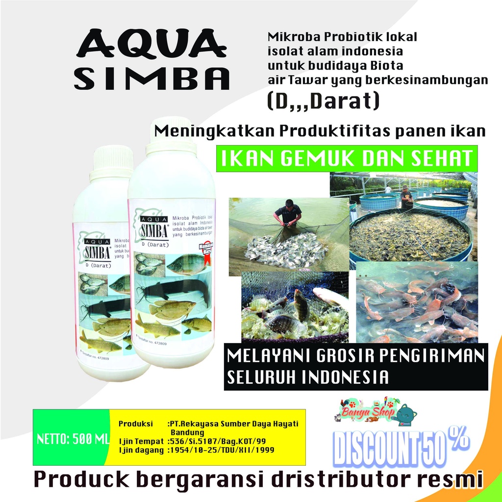 Cara penggunaan: SEBAGAI BAHAN CAMPURAN PAKAN IKAN Encerkan Aqua Simba dengan air 1 : 25 Campurkan 50% dedak dengan 50% ampas tahu, lebih baik ditambah sumber protein secukupnya (tepung ikan, sampah ikan asin, siput, keong, dll) Campurkan secara merata Aqua Simba D yang sudah diencerkan dengan campuran di atas Biarkan 2-3 jam, aduk 1-2 kali Pakan siap diberikan pada ikan CAMPURAN PAKAN IKAN JADI (PELET) Encerkan Aqua Simba D dengan perbandingan 1 : 10 Siramkan pada pakan jadi dengan takaran 1 liter Aqua Simba D yang sudah diencerkan dengan 10 kg pakan. Aduk selama kurang lebih 3 jam dan pakan siap diberikan pada ikan