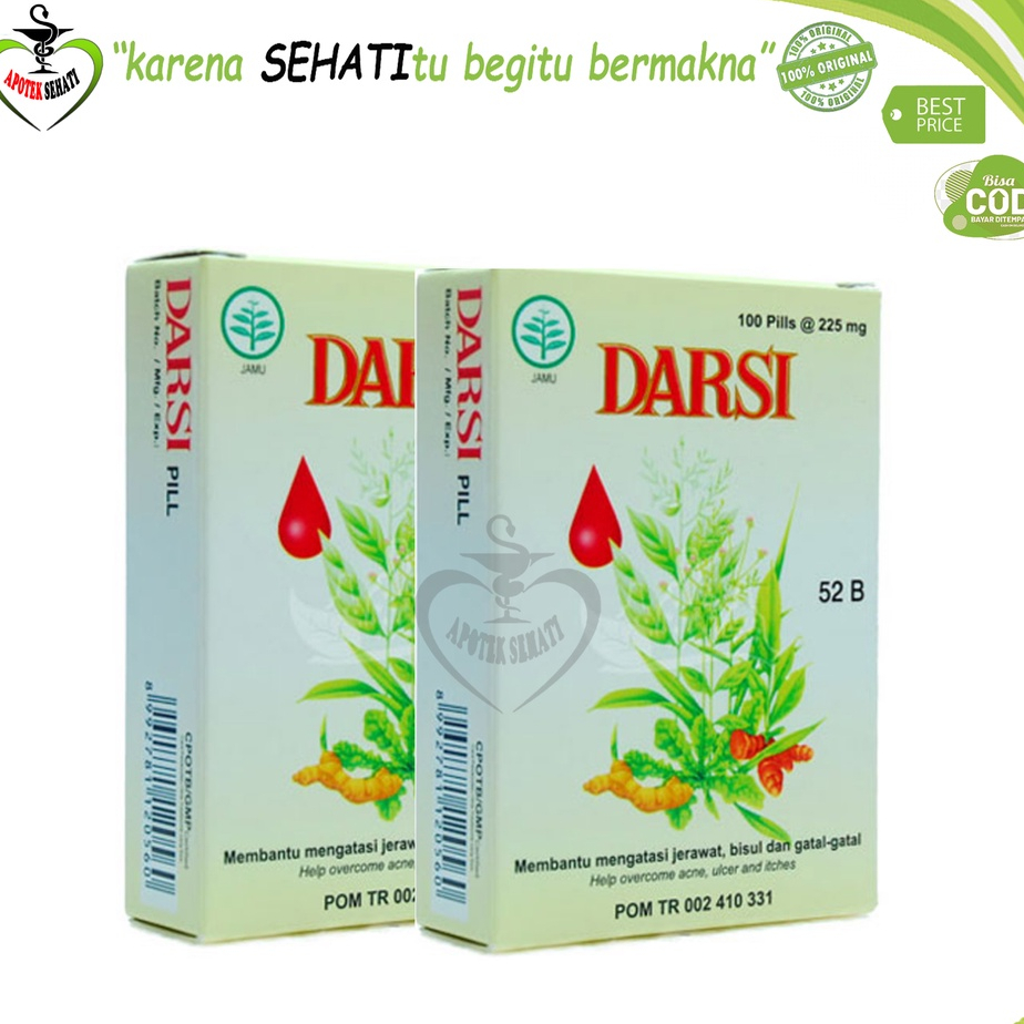 Darsi adalah salah satu jamu yang komposisinya terdiri dari berbagai jenis tanaman herbal asli Indonesia dan bermanfaat untuk membersihkan darah sehingga bisa membantu mempercepat penyembuhan jerawat. Jamu Darsi diproduksi oleh PT Industri Jamu Borobudur dan berbentuk kapsul kecil. Manfaat Darsi bukan hanya untuk menyembuhkan jerawat tetapi juga masalah kulit yang lain, karena manfaat utama jamu ini adalah untuk membersihkan darah kotor (salah satu faktor yang diduga penyebab munculnya jerawat) . Aturan minumnya adalah 2 kali sehari dengan 2 kapsul sekali minum. Manfaat darsi : - Mengurangi Sekresi Minyak oleh Kelenjar Sebaceous -Mencegah bakteri penyebab jerawat -Mengurangi peradangan -Membersihkan Darah Kotor -Mempercepat Penyembuhan Luka - Melancarkan Peredarah Darah -Memberikan Nutrisi untuk Kulit Wajah "karena SEHATItu begitu bermakna"