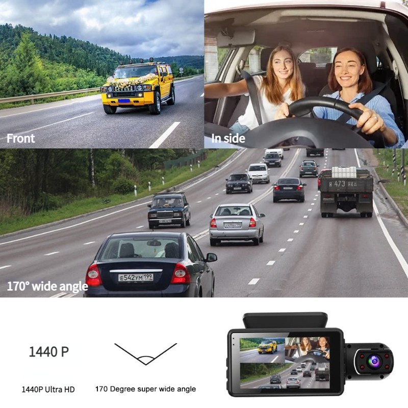 Dash cam 1440P 3" IPS Screen Dual Lens Front and Inner Night Vision 3" Ips Screen G-Sensor 24-hour Parking Monitoring Loop Recording