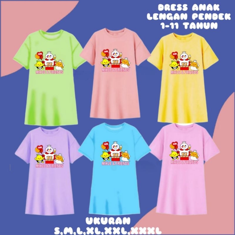 Detail DASTER ANAK PEREMPUAN//DRES ANAK PEREMPUAN LENGAN PENDEK1-11TAHUN BONEKA MIXUE & FRIENDS