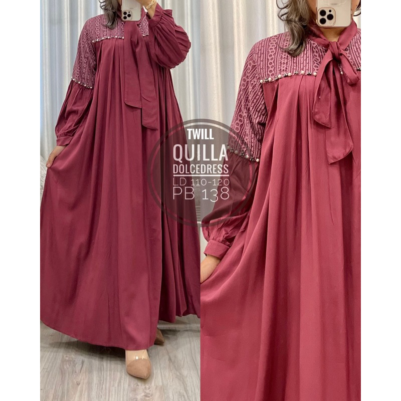 Detail Daster Arab Dolce QUILLA Maxi Dress Organza Gamis Twill Premium Big Size