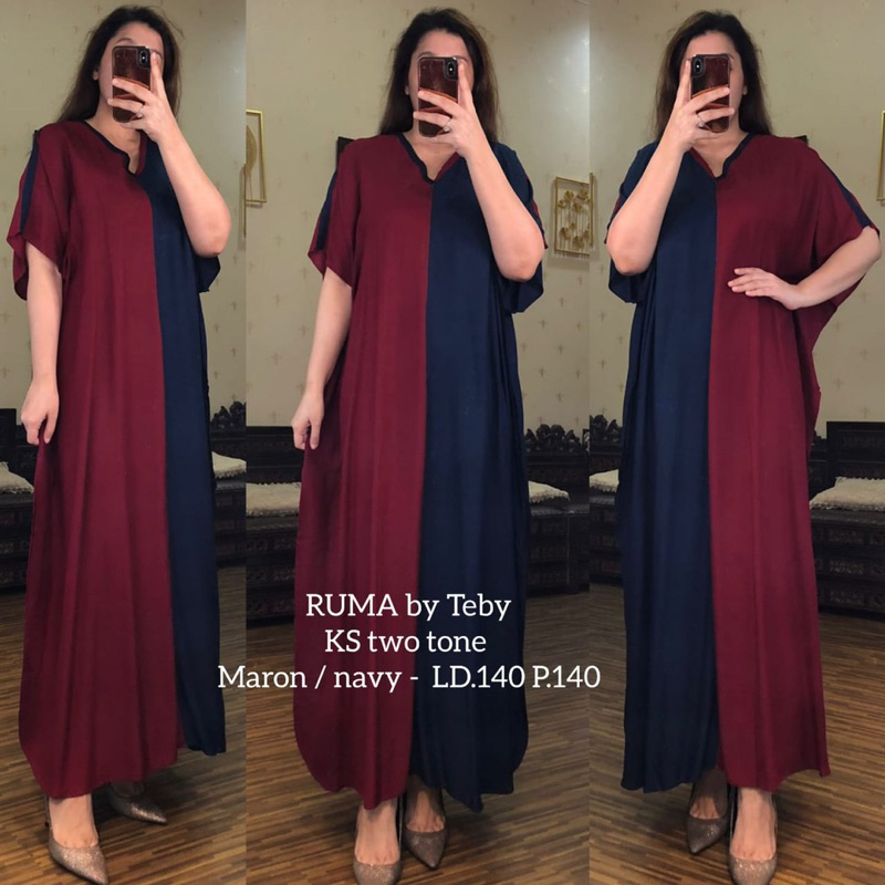 Daster kaftan Ks Ruma Big Size Jumbo Produk Daster Arab Original Nama model : KS RUMA (Kelelawar Serut) Produsen : TEBY DRESS Merek Label : RUMA Brand : Teby Dress Bahan : Katun Rayon Super