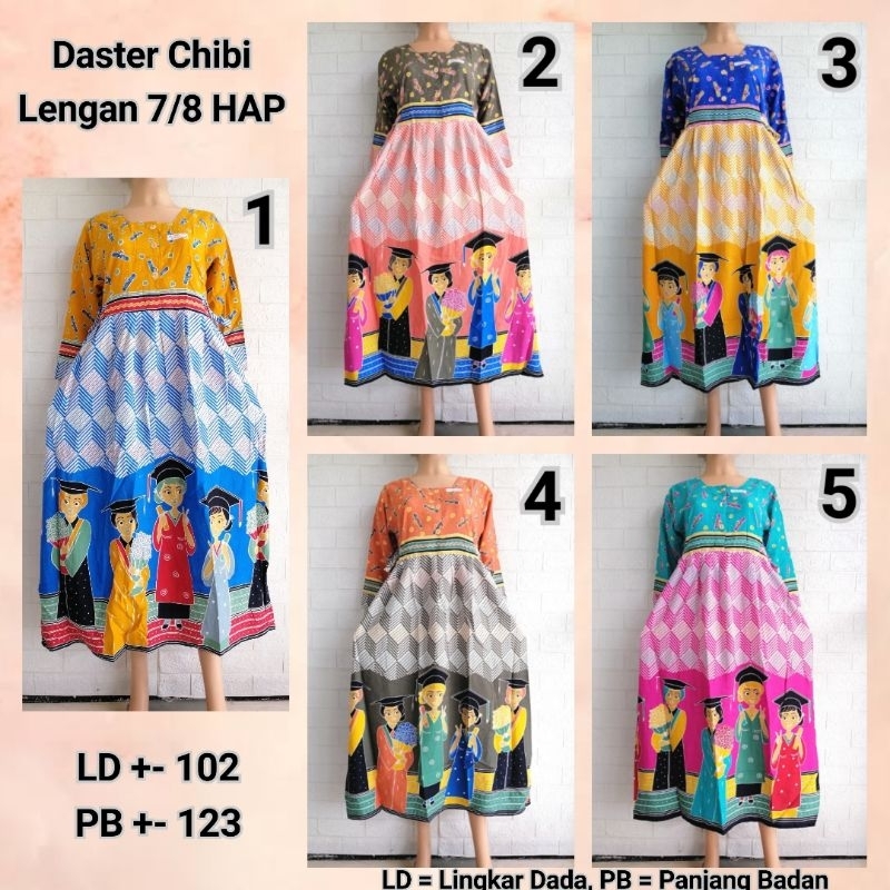 Detail DASTER CHIBI LENGAN 7/8 HAP RAYON ADEM BUSUI FRIENDLY MOTIF 6HT + TOGA