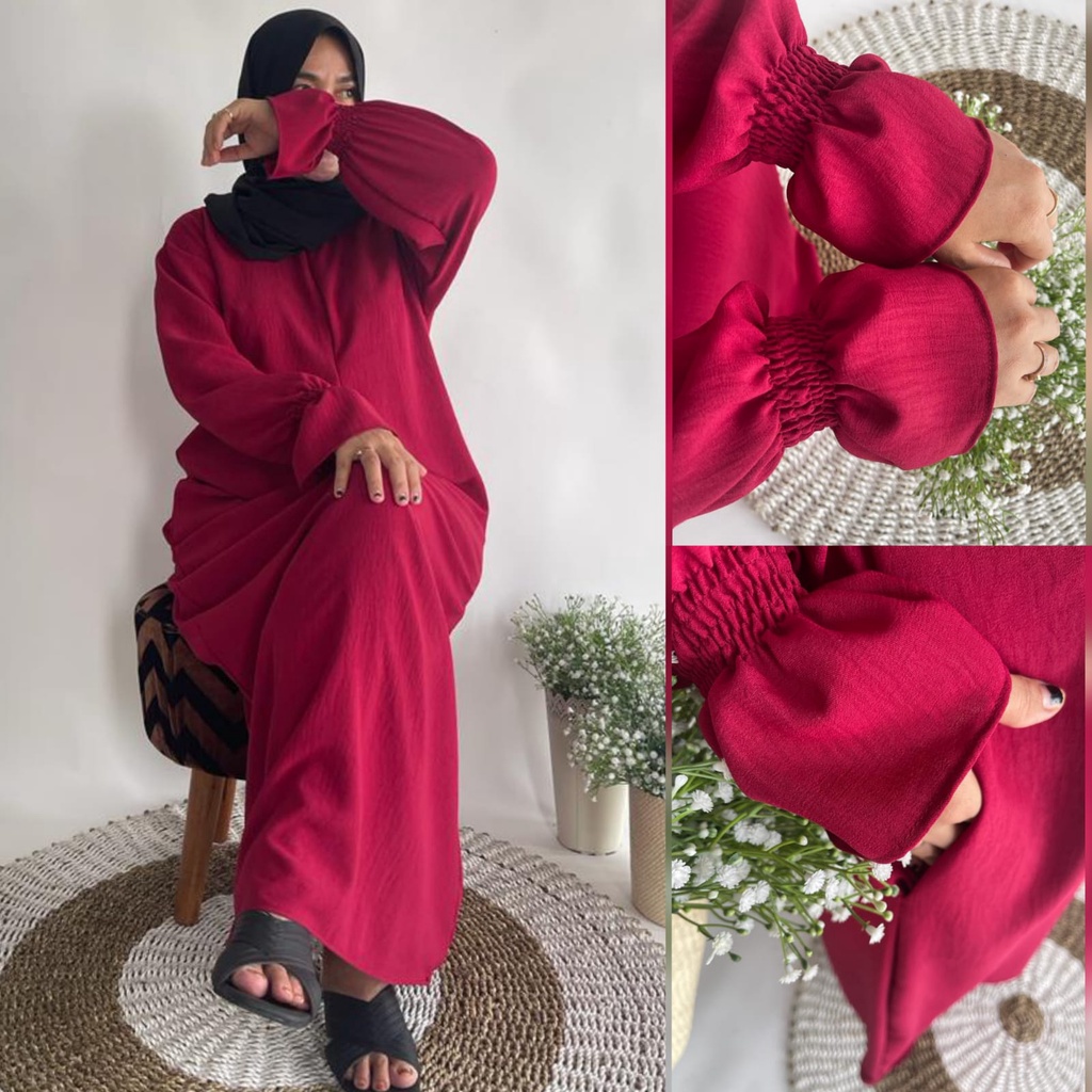 Detail Daster Crinkle LD 125 Lengan Panjang karet Polos Premium Kekinian Busui Friendly