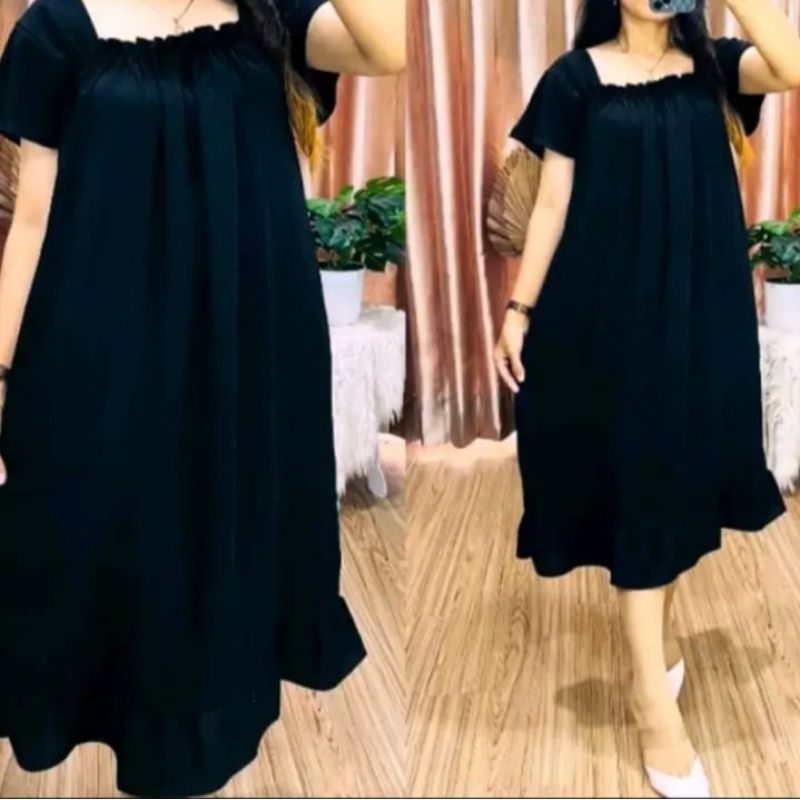 LAURA DRES 🥼 Ukuran : FIT TO ALL SIZE(XL) 👕 LD : 110cm melar ke 120lebih PJ :110 CM 👗 Bahan : CRINGKEL DETAIL 👗lengan lebar mayung 👗bagian bawah rempel 👗ada saku disebelah kanan