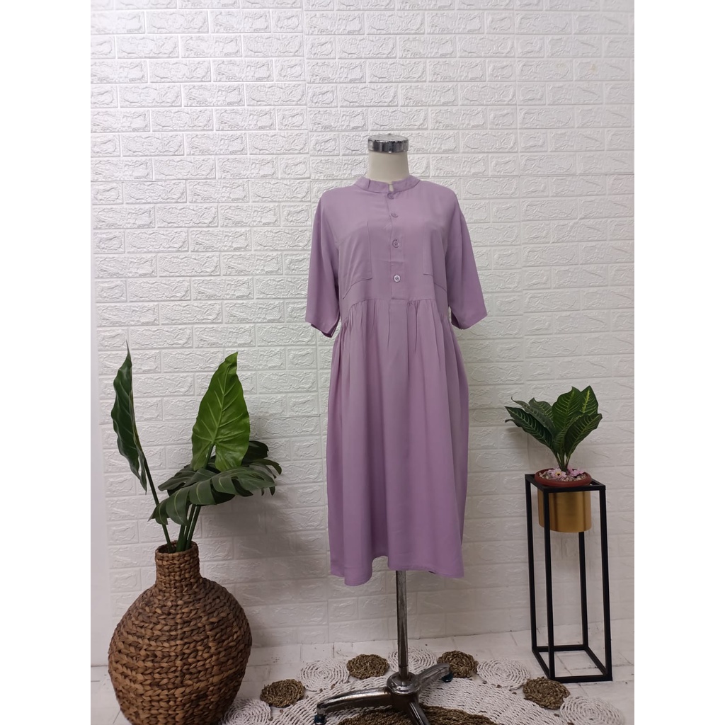 Detail Daster Jumbo Lengan Pendek - Daster Rayon Halus Saku 2 - Daster Polos Rayon Kancing Depan Busui - Daster Tidur Wanita Dewasa - Daster Murah Jumbo