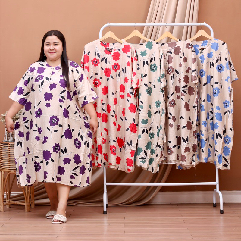 DASTER JUMBO LENGAN PENDEK LEHER KANCING BUMIL BUSUI MURAH ADEM | MUAT BB 80KG 90KG 110KG 110KG