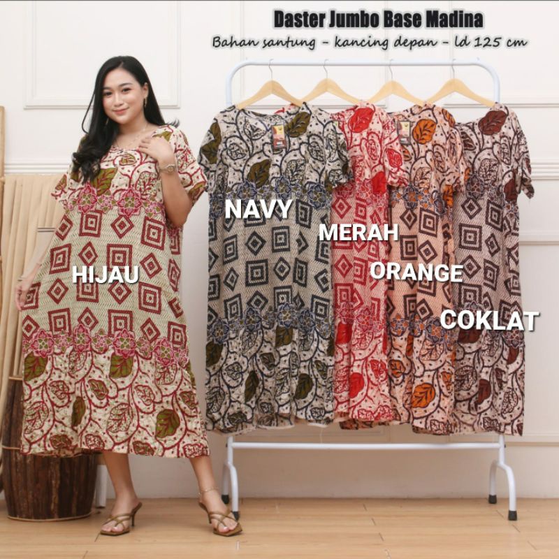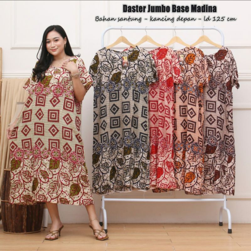 Detail DASTER JUMBO XXL MOTIF BASE MADINA BUSUI KANCING DRESS BAJU TIDUR