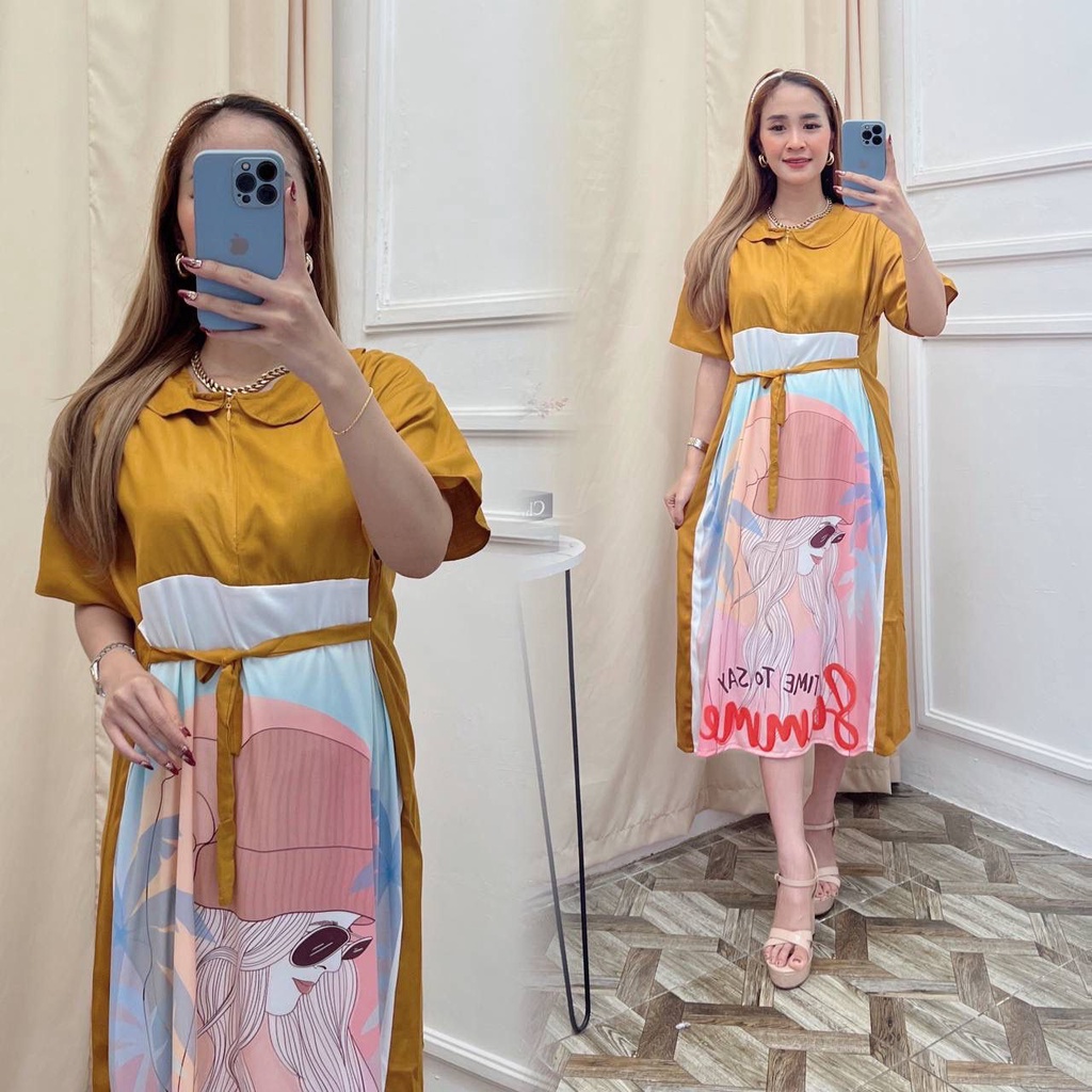 Detail Daster Kekinian Emblem Print Kartun Cute Rayon Premium Dress Wanita Lengan Pendek Baju Fashion Kekinian