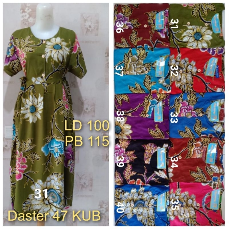 Detail Daster Kencana Ungu 47 chibi label biru LD 100 cm