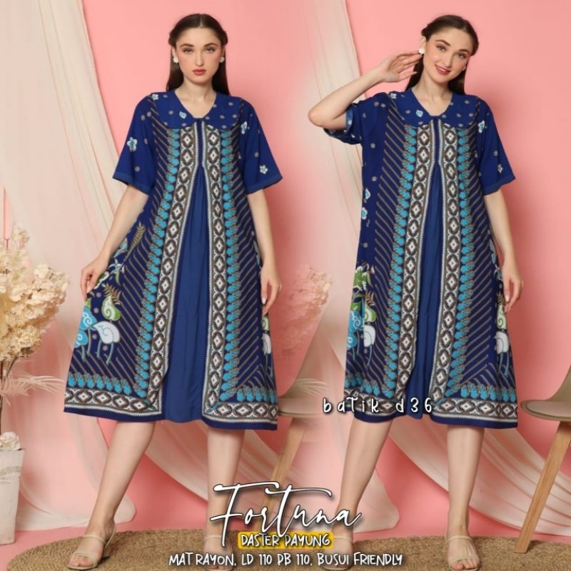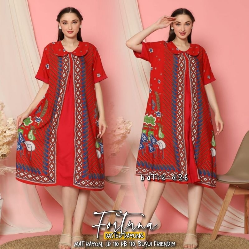 Detail Dress Daster Nyaman Bumil Non Busui Krah Payung Rayon Premium Fortuna Baju Tidur Wanita motif batik modang