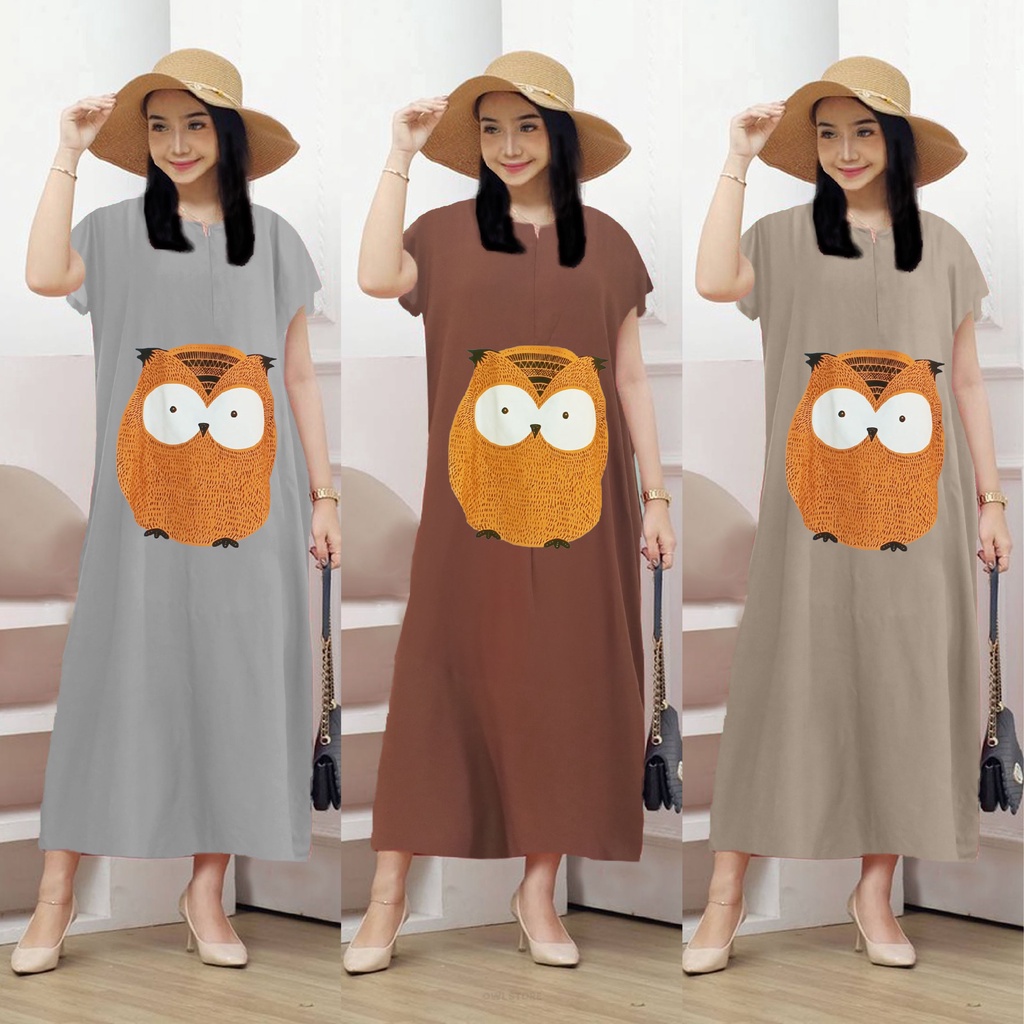 Daster Owl Panjang Semata Kaki Bahan Rayon Halus LD120 Long Dress Santai - Owl Store