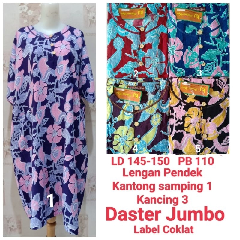 Pakaian Wanita > Pakaian Tidur & Piyama > Daster > Daster Plisir Jumbo LD 130-150 cm Batik Kencana Ungu label Coklat