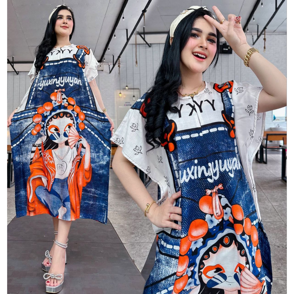 Detail Daster Rayon Busui Motif Terbaru EUROPA Resleting Depan harga murah model daster jumbo kekinian