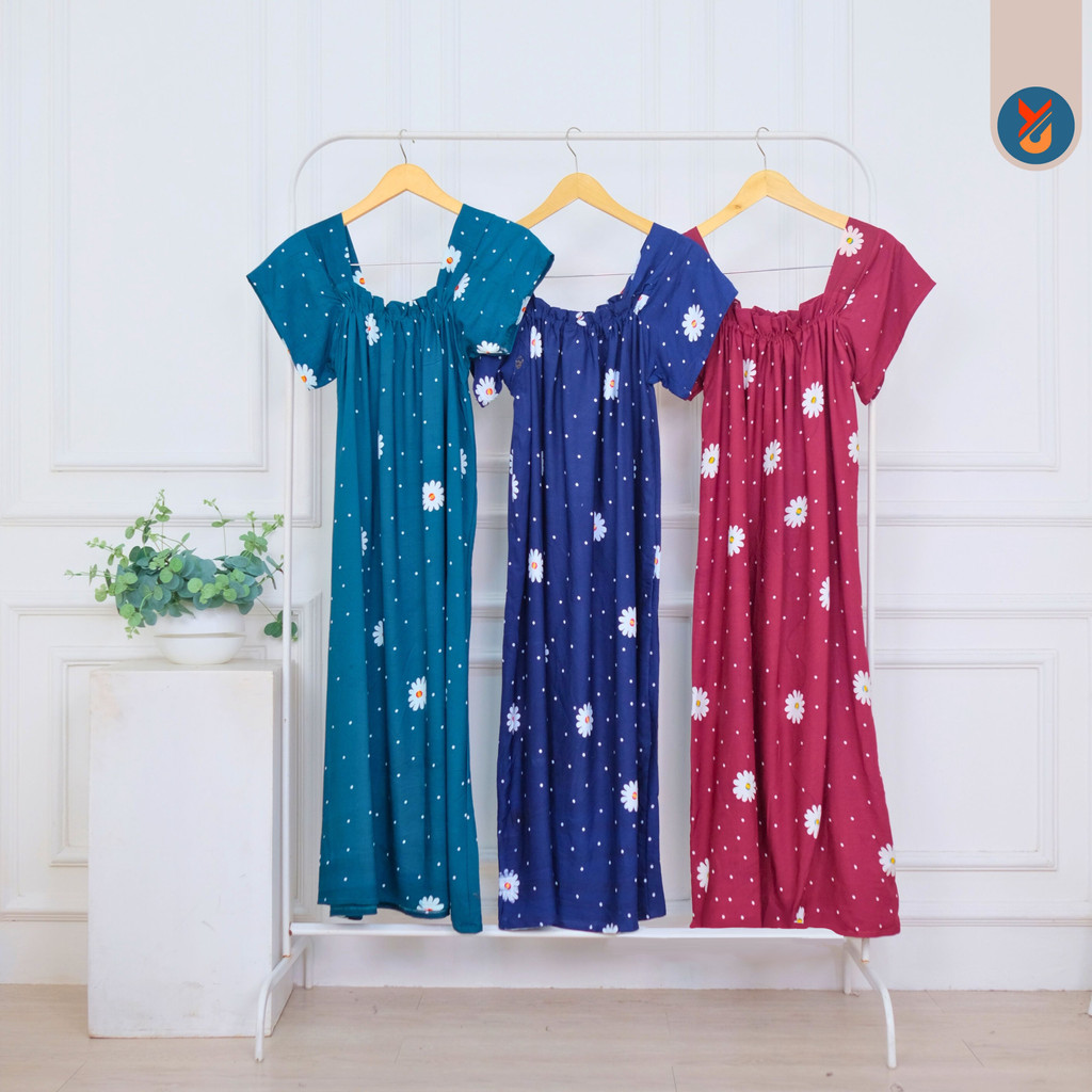 Daster ini menggunakan model A-line, Dengan karet yg dapat melar diatas dada, model daster ini cocok dijadikan pakaian sehari - hari saat dirumah maupun di luar rumah dengan memakai outer yang pastinya akan selalu tampak menarik & beda dengan yang lain