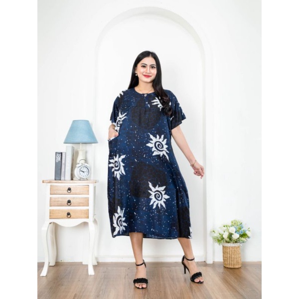 Pakaian Wanita > Pakaian Tidur & Piyama > Daster > Daster rayon jumbo motif batik bunga bunga Ld 130 busui resleting depan warna kuning hijau maroon biru big size