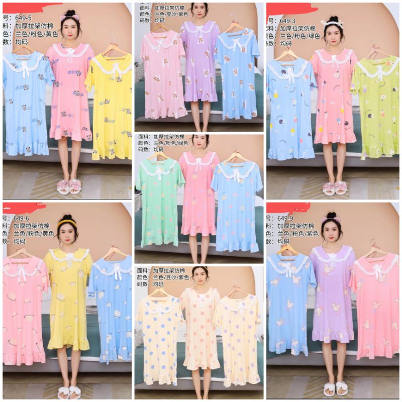 Daster Jumbo Bahan Spandex NO 1-7 Dan 13-16 Ld 120 - 136(50-75kg) No 8 -12 Dan 17 - 37 Ld 120-150(50-85kg) No 38-45 Ld 120-140 Note No 1-7 Ld116-136 NOTE Boleh cantumkan warna yg dipilih,jika kosong kita kasih random(no komplain dan tidak bisa tukar🙏🙏🙏)