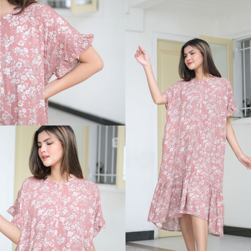 Bismillah...Ada yang baru niih daster selutut pakai ruffle di bagian lengan dan ruffle di bagian bawah ๐