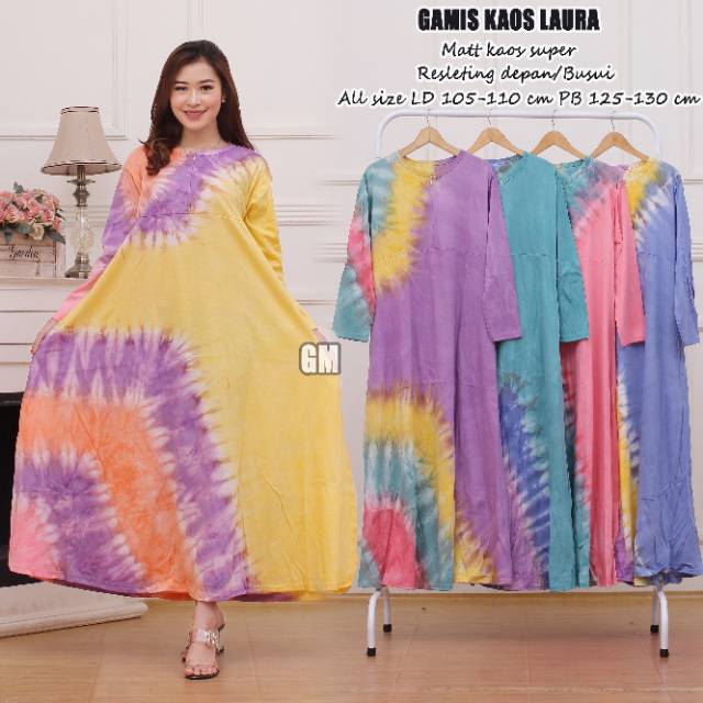 Gamis tie dye,resleting depan atau bisa untuk ibu2 menyusui..