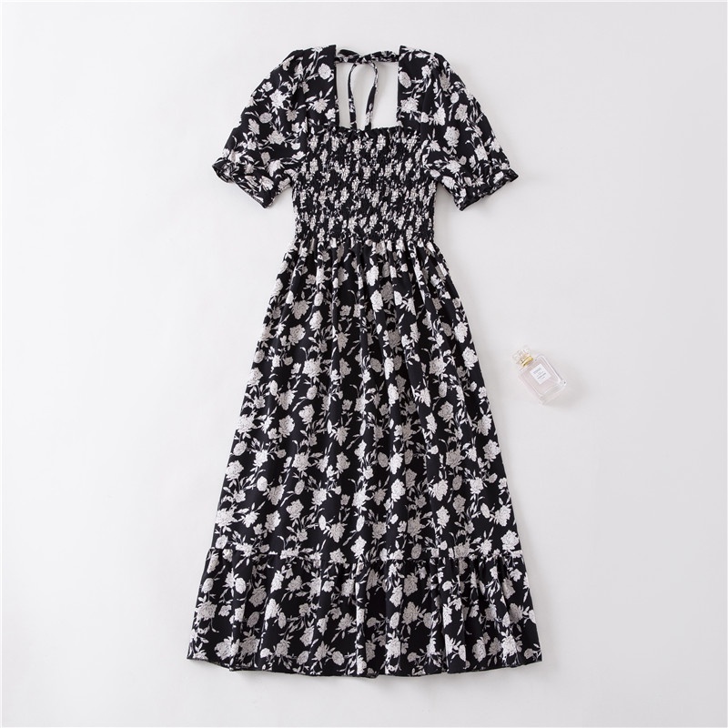 Detail Daster wanita lengan pendek musim panas A-line floral boho midi dress