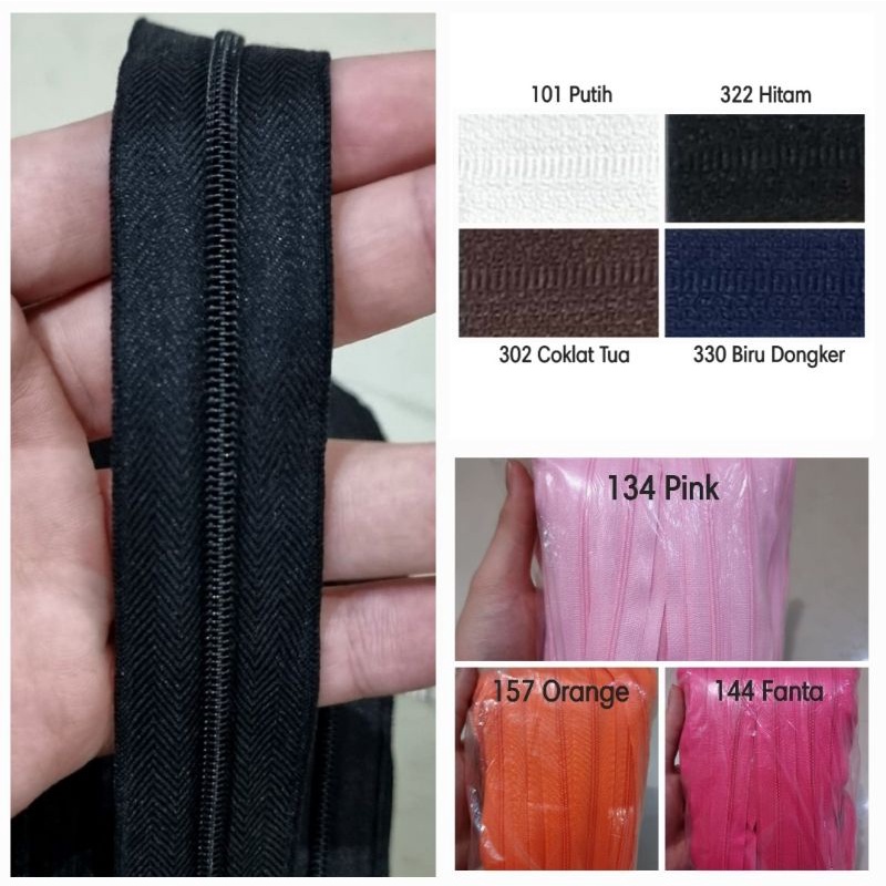Resleting / Zipper Gigi Plastik (Nylon) Nomor 3 TEBAL Kualitas bagus yg tebal punya, berat +/-950 gram per 100 yard Dijual per roll besar isi panjang 400 yard atau +/-364 meter Harga tertera per Roll