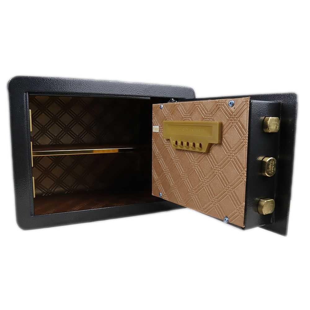 Kombinasi Angka Kotak brankas ini menggunakan metode penguncian menggunakan kombinasi angka. Anda dapat mengatur hingga 8 digit kombinasi angka. Terdapat 2 buah kunci darurat yang dapat Anda gunakan untuk membuka brankas ini.