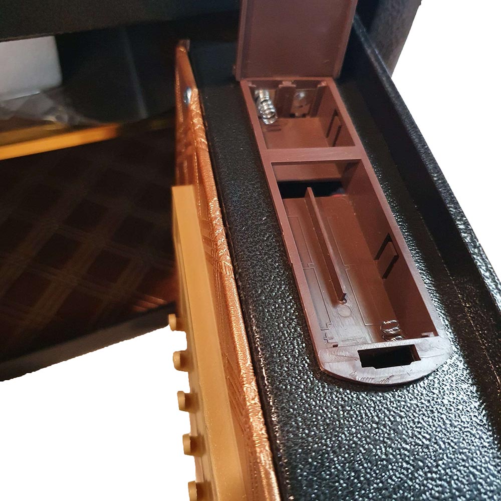 Kombinasi Angka Kotak brankas ini menggunakan metode penguncian menggunakan kombinasi angka. Anda dapat mengatur hingga 8 digit kombinasi angka. Terdapat 2 buah kunci darurat yang dapat Anda gunakan untuk membuka brankas ini.