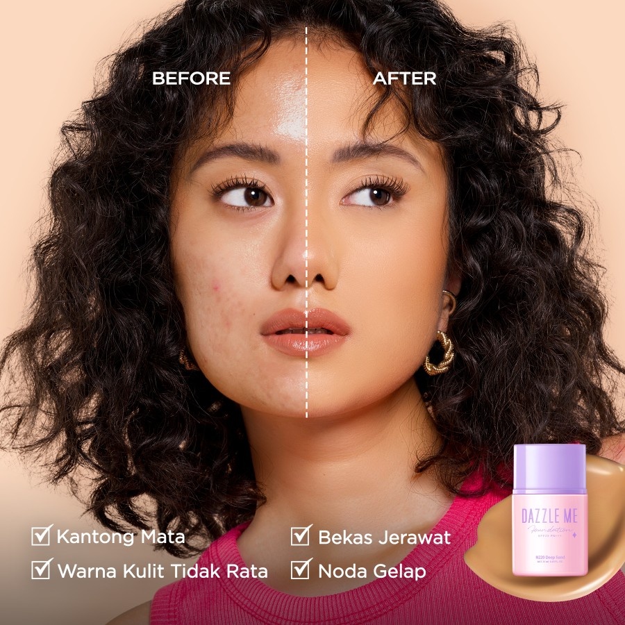 ✨ Natural matte finish ✨ SPF 25 PA+++ ✨ Lightweight & nyaman di kulit ✨ LONGLASTING hingga 24 JAM ✨ Transfer-proof, smudge-proof & mask-proof ✨ Non-patchy, non-cakey, no dryness ✨ Alcohol, Paraben & Mineral Oil FREE Get your natural flawless skin with DAZZLE ME Day by Day Foundation! ❣️ Ukuran: 25ml