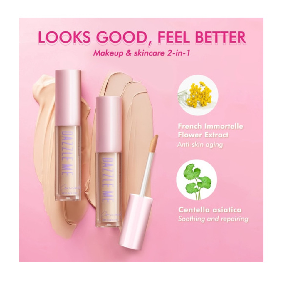 DAZZLE ME Our Secret Cover Concealer dapat menyamarkan lingkaran mata, warna kulit tidak merata dan bekas jerawat secara efektif. Dengan tekstur yang ringan & halus, membuatnya sangat mudah untuk diratakan pada kulit, menghasilkan riasan kulit yang mulus. Kandungan bahan NATURAL KHUSUS juga membuatnya menempel sempurna pada kulit sepanjang hari, tanpa perlu khawatir make up bergeser.