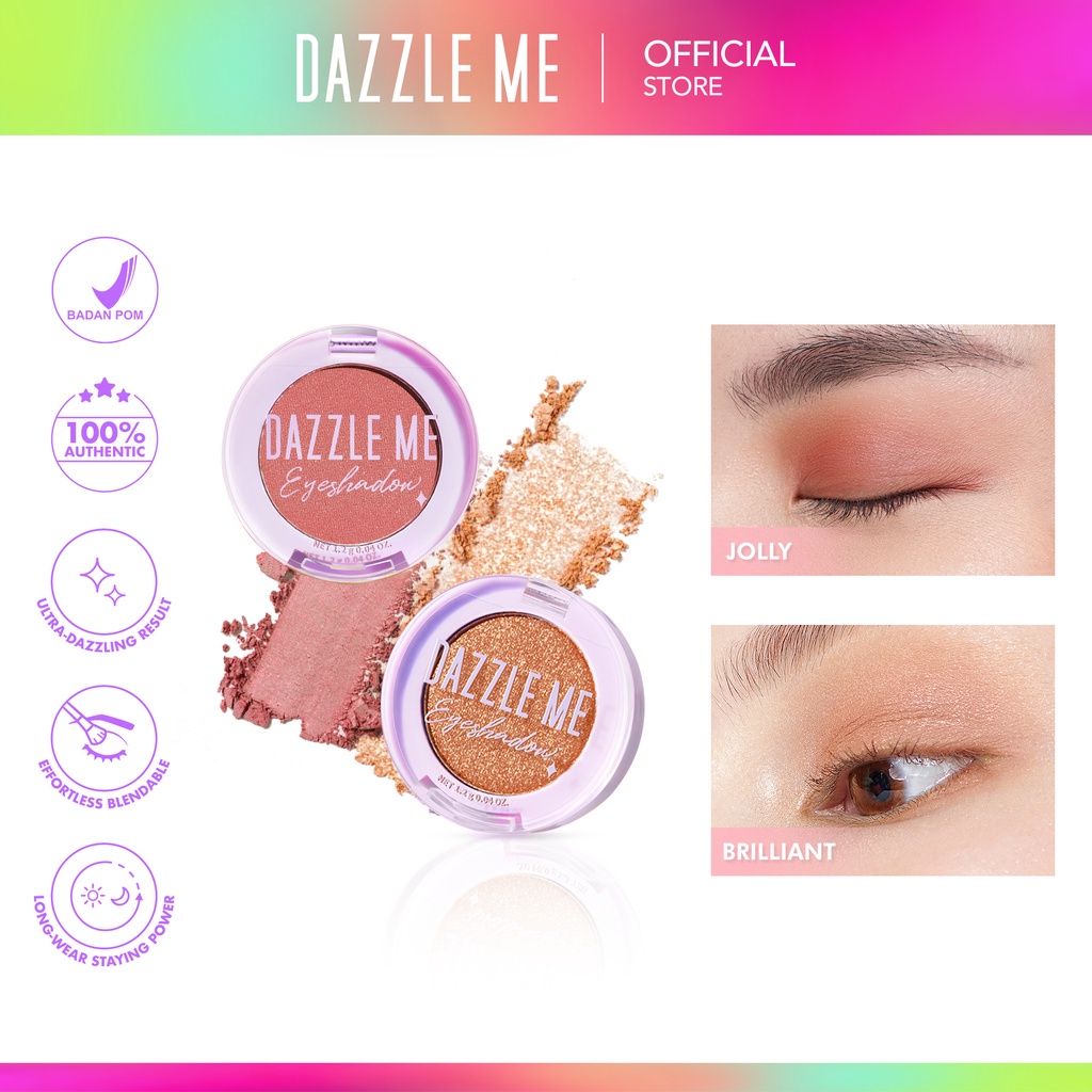 Video perkenalan produk DAZZLE ME POV Eyeshadow Indonesia / 1.2g / Long Staying High Pigmentation Easly Build And Blend / Ultra Dazzling Result Effortless Blendable Long Wear Power / Glitter Shimmer Matte Shadow Glowing Glow / Cosmetic Makeup Eyes Make Up Kosmetik Mata Series. Sumber: Shopee.