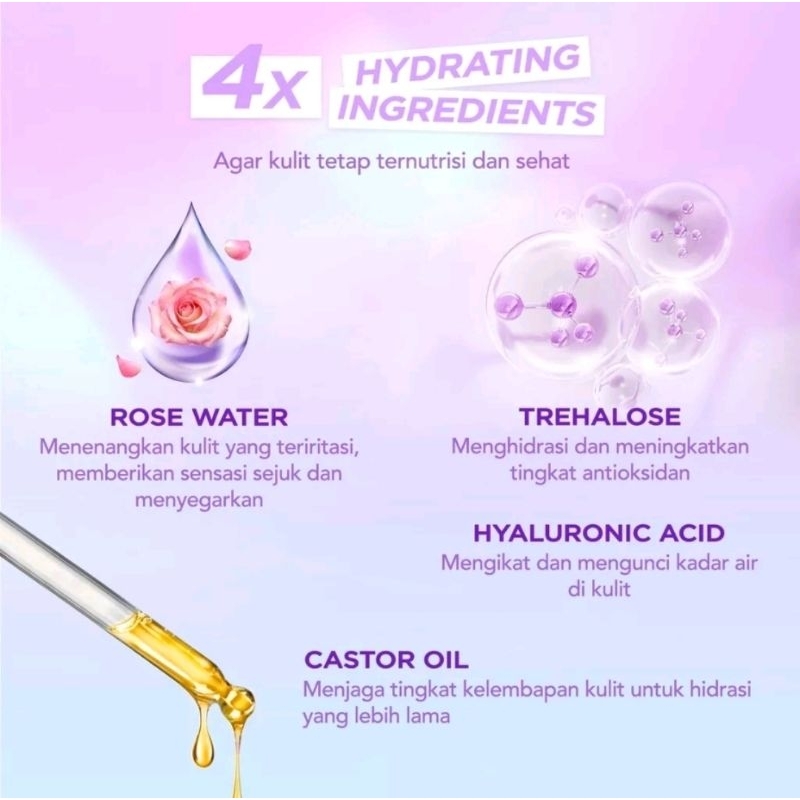 ✨ Absorbs Easy ✨ Hydrates Deeply ✨ Hassle Free ✨ Long-lasting Moisturizing ✨ Refreshing and Non-Sticky ✨ On-the-Go ✨ Dapat digunakan dalam berbagai situasi, serta dapat digunakan sebagai sheet mask