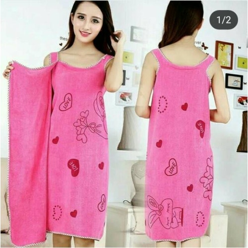 Handuk Dress super canrik bangett, Tanpa ribet Lap badan setelah mandi gak Usah lagi repot repot sampai handukan 2 kali yahh + Cucok banget digunakan selepas berenang cantikkk ๐๐
