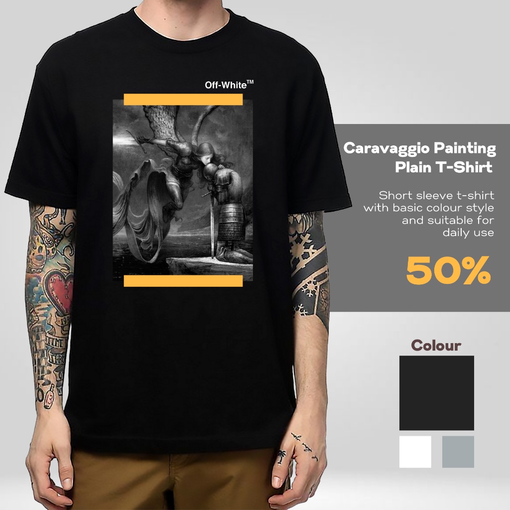 Kaos Pria Limited Edition Premium Design dengan motif super mewah & branded dibalut dengan proses sablon terkuat di kelasnya mampu mengejar ribuan warna dengan detail, kami persembahkan Kaos Limited Edition Caravaggio Painting untuk yang berjiwa petualang dengan bahan super premium katun sehingga mempunyai tingkat kelembutan maksimal