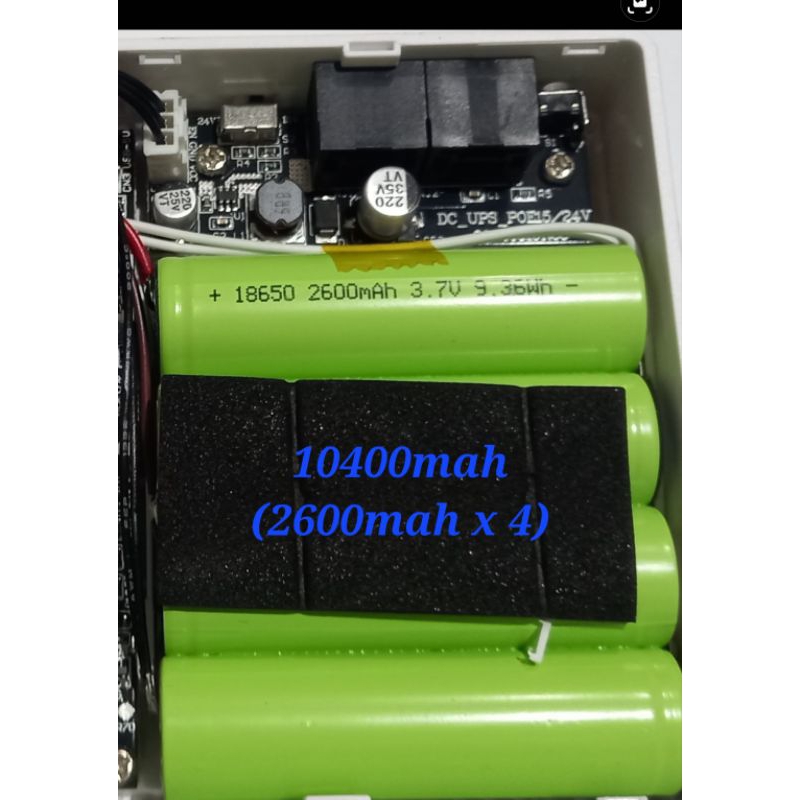 Mini UPS DC utk WIFI, Router, Barcode printer, CCTV dengan Output 36W Battery 10400mah (4 x 2600mah). Waktu Backup yg Lama bisa sampai 8 jam tergantung daya dari beban yg terpasang Banyak Pilihan outputnya USB 2A DC Jack 5V/2A ; 9V/2A ; 12V/2A POE PORT 15V/24V 1A Input AC 85V - 240Volt Tidak ada jeda perpindahan dari PLN ke UPS sehingga router/wifi mati / restart