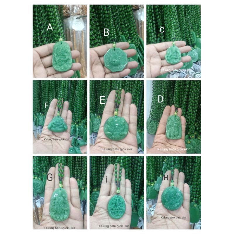 Detail DCC333. Kalung+Liontin batu giok ukir warna hijau