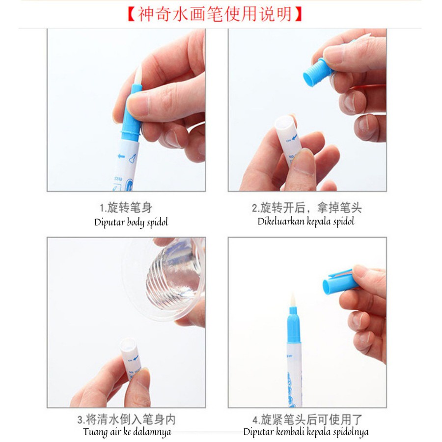 Cara kerja buku MAGIC ini adalah buku ini akan mengeluarkan warna dari pensil yang di isi dengan air, dan apabila sudah kering maka akan kembali ke semula (tanpa warna) demikian seterusnya. Oleh karena itu segera dapatkan produk yang sangat berguna buat edukasi dan mengisi waktu luang anak anda dengan MAGIC COLORING BOOK