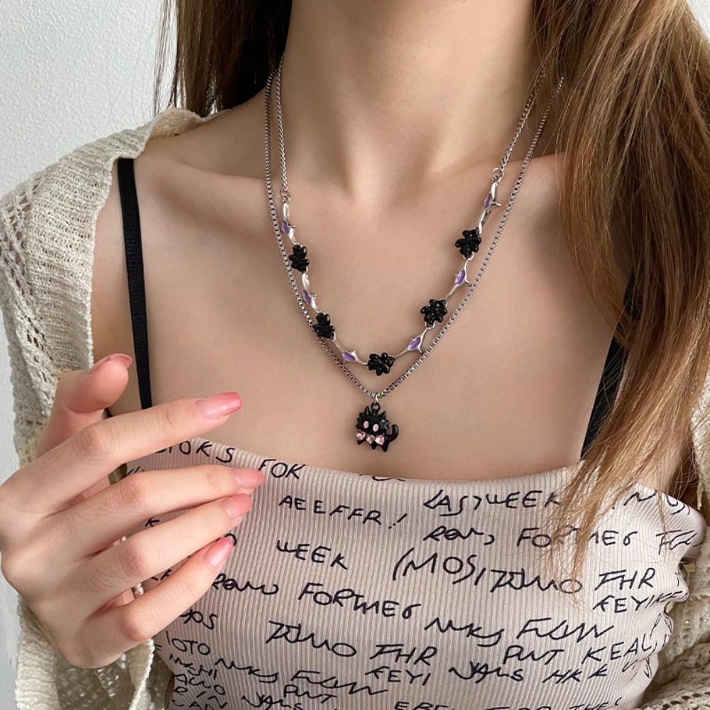 Detail Deartiara Kalung Bunga Kucing Hitam Lapis Ganda Untuk Ceruk Perempuan Ringan Mewah Manis Keren Pedas Gadis Rantai Tulang Selangka
