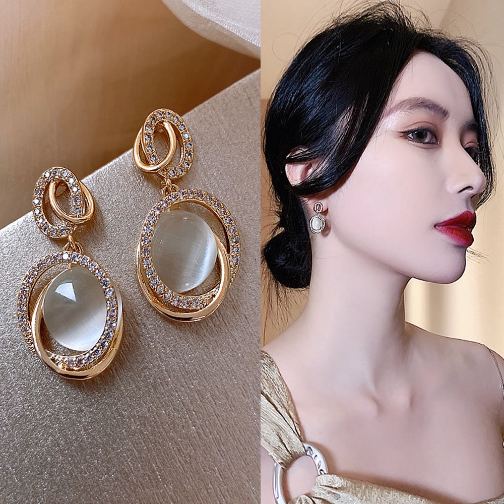 Aksesoris Fashion > Anting > Deartiara Korea Selatan Anting Batu Mata Kucing 3D Anting Lingkaran Geometris Anting Gaya Fashion Baru Anting Dan Anting Untuk Wanita