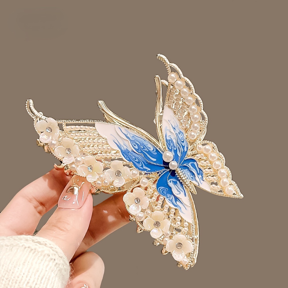 Detail Deartiara Super Abadi Kupu-Kupu Imitasi Mutiara Bunga Ambil Klip Fashion Elegan Kembali Sendok Hiu Klip Hiasan Rambut