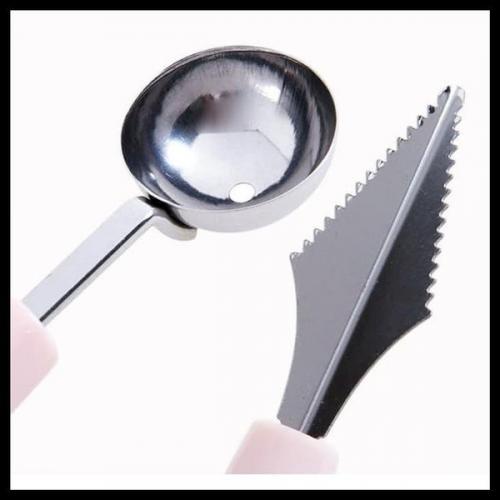Cara Pakai : Masukkan sendok ke dalam buah dan putar ke satu arah untuk mendapatkan bola2 buah yg cantik. Anda juga bisa mengukir melon seperti bunga.