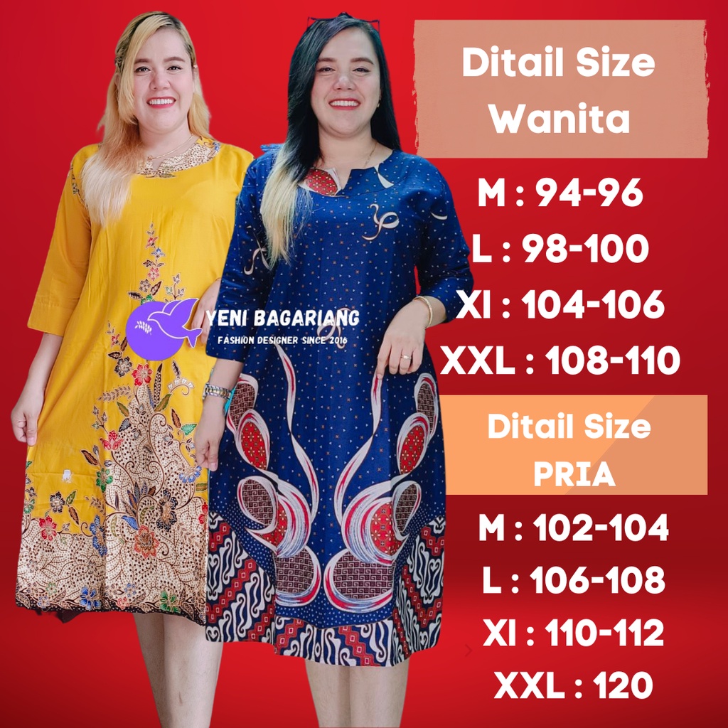 LINGKAR DADA PEREMPUAN : ✅ LAPIS PURING ✅ M 94 - 96 ✅ L 98 - 100 ✅ XL 104-106 ✅ XXL 108 - 110 ✅ PANJANG 100cm ✅ RESLETING BELAKANG